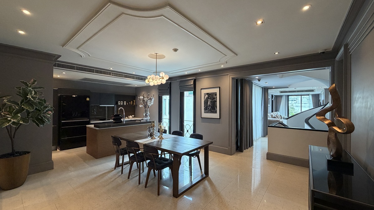This rare 303.59 sqm luxury triplex at Baan Lux Sathorn offers a true “vertical home” experience in the heart of the Silom–Sathorn area. With private lift access directly into the residence, classical European interiors, and the option to convert from 2 to 3 bedrooms, this fully renovated unit is ideal for high-net-worth buyers seeking space, privacy, and exclusivity in a low-density boutique project.