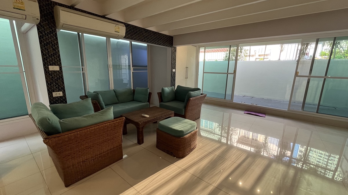 The townhouse’s location in Suanplu, Sathorn, provides easy access to Bangkok’s amenities while maintaining a peaceful residential atmosphere. This balance of urban convenience and quiet living is a rare find.