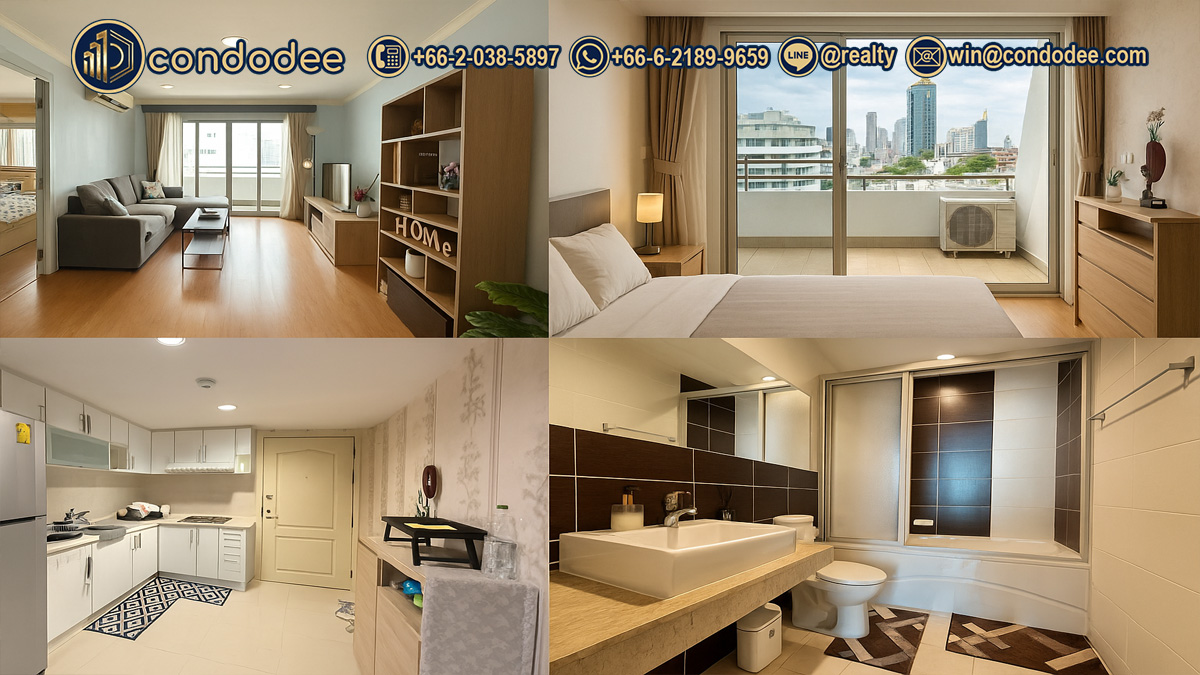 Each unit features a private balcony, bathtub, fully equipped kitchen (oven, microwave, refrigerator, stove), quality furnishings, and energy-efficient air conditioning. Many are ready-to-move-in—ideal for those seeking convenience in central Bangkok.